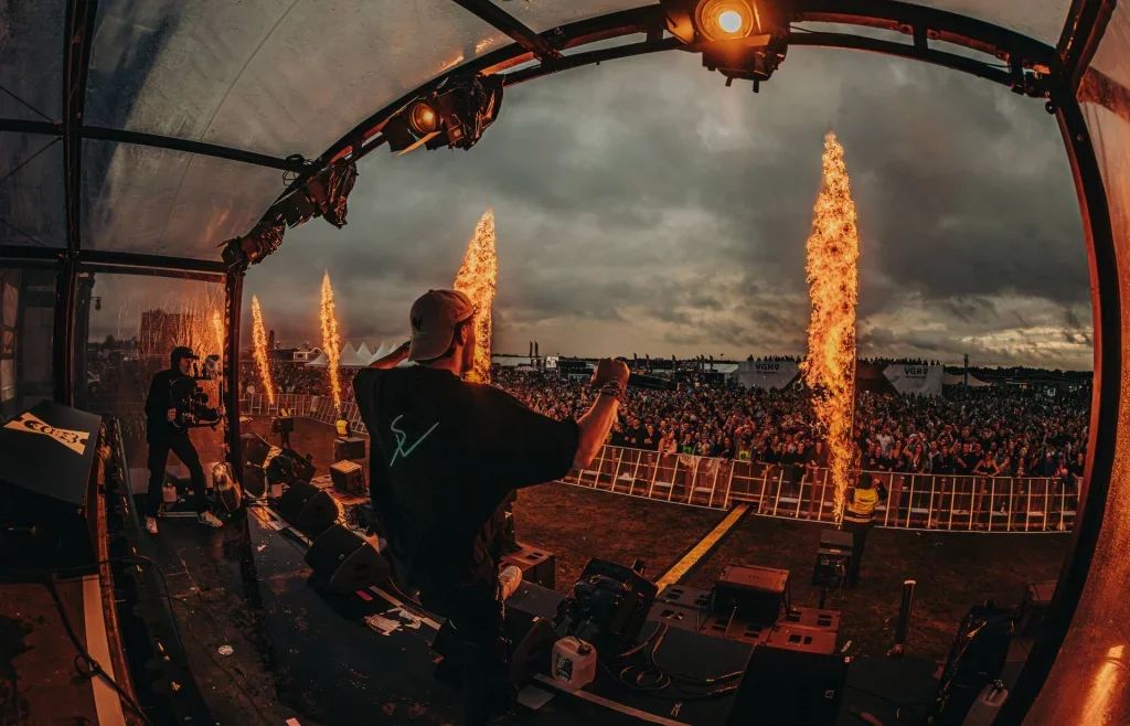 The festival attracts a dedicated community of 20,000 electronic music enthusiasts—from seasoned ravers in their thirties to university students discovering harder sounds for the first time. Ferdinands Feld creates an immersive experience where the music never stops, with surprise back-to-back sets and extended DJ performances that keep the dancefloors packed until dawn.